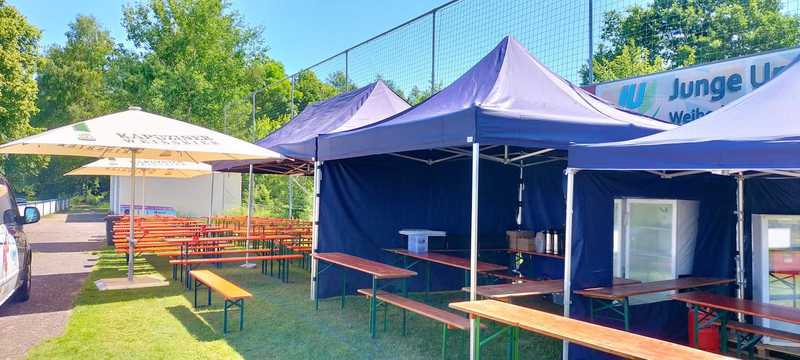 Pünktlich zu Turnierbeginn boten die Frauen des Weiherhammerer Fanclubs ein reichhaltiges Torten – und Kuchenbüfett an. Bei einer großen Auswahl mit Spezialitäten vom Grill und kalten Speisen wurden die Teams und Besucher bis spät am Abend verpflegt